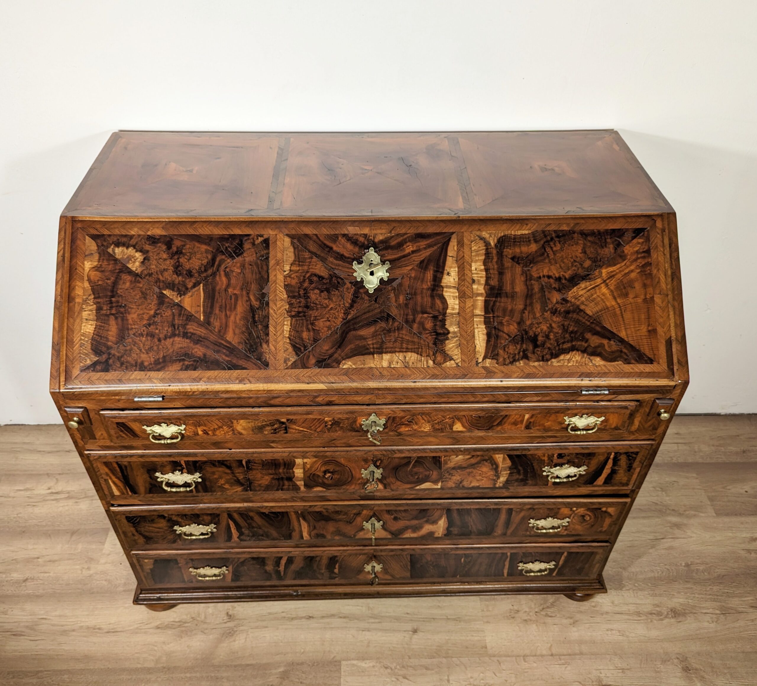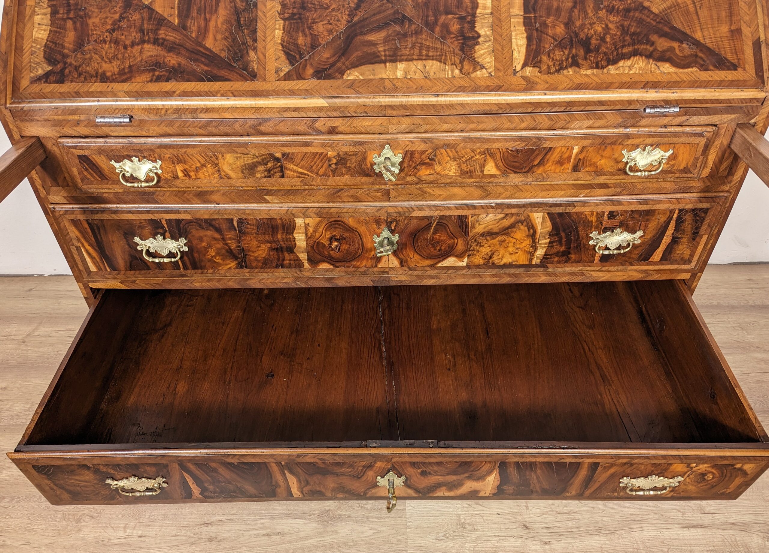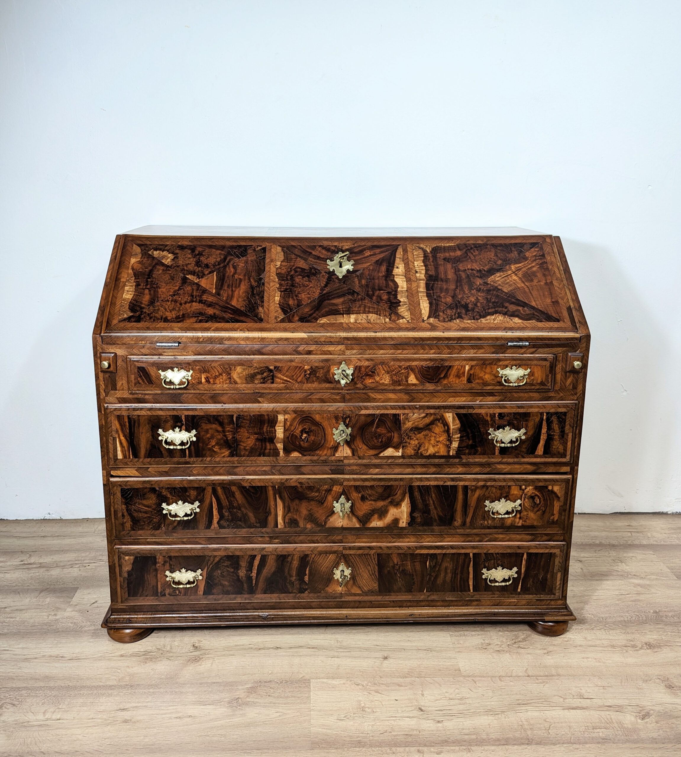 Glatte Seiten, Sekretär ist mit schönem Wurzelholz furniert